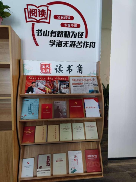 活動開展以來,產(chǎn)發(fā)企管集團(tuán)各權(quán)屬企業(yè)高度重視,積極謀劃,認(rèn)真部署,在黨員活動室、會議室及公共辦公區(qū)域等選擇適當(dāng)位置,因地制宜創(chuàng)建各具特色的廉潔讀書角。讀書角內(nèi)放置黨史類、黨紀(jì)法規(guī)類、反腐倡廉類及紀(jì)檢監(jiān)察類期刊等讀物,為干部職工提供了一個(gè)了解黨風(fēng)廉政建設(shè)、學(xué)習(xí)時(shí)政及黨紀(jì)法規(guī)、掌握中央八項(xiàng)規(guī)定精神、體驗(yàn)廉潔文化、感悟廉潔力量的重要窗口。讀書角周邊張貼“書香致遠(yuǎn)、清廉潤心”“書香育廉、閱以修身”等各類廉潔文化宣傳標(biāo)語,營造了濃厚的廉潔氛圍。