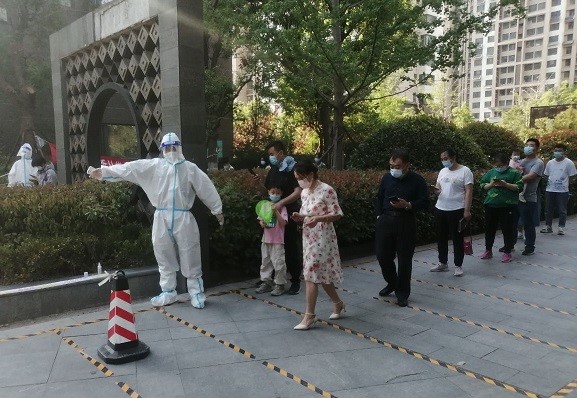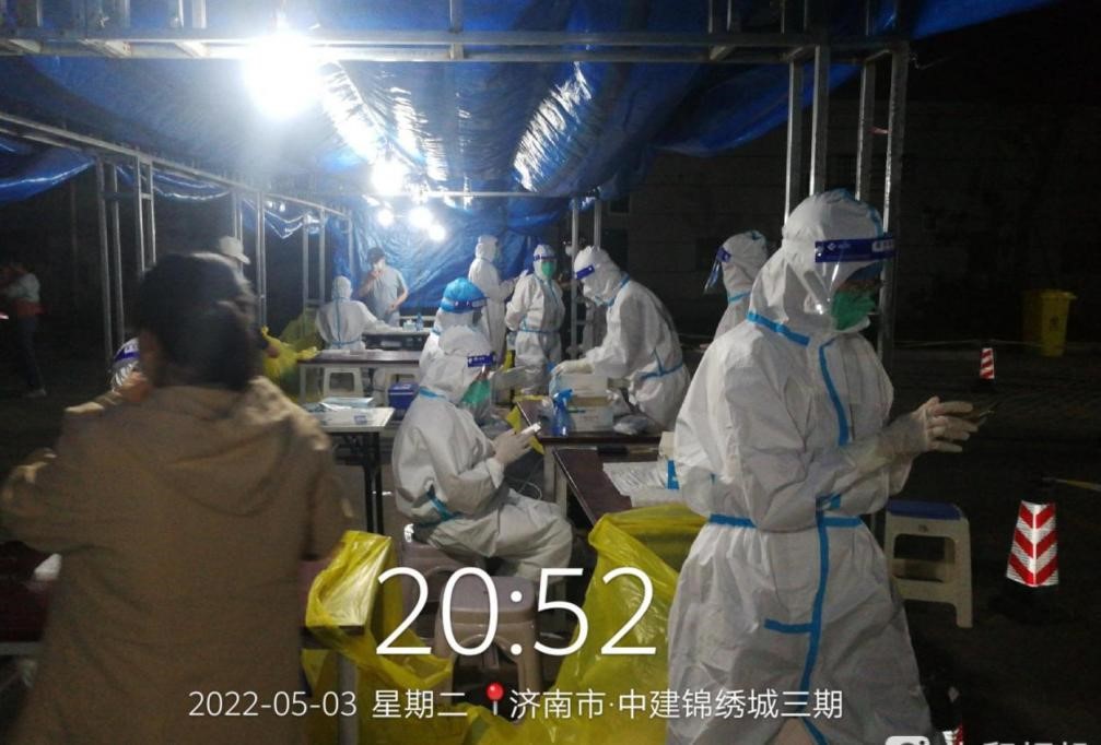 集團(tuán)支援天橋區(qū)濱河雅居的下沉人員由翟思成帶隊(duì),帶領(lǐng)郭正亮、杜瑞帥、趙士民、楊世興、馮鵬飛等5名志愿者,自4月27日進(jìn)駐濱河雅居社區(qū)以來(lái),他們聽(tīng)從社區(qū)安排,進(jìn)行核酸檢測(cè)維持秩序,人員摸排、統(tǒng)計(jì)數(shù)據(jù)等工作?!懊刻煜掳喽嫉猛砩?0點(diǎn)半了”, 翟思成說(shuō),為保證社區(qū)居民核酸檢測(cè)不漏一人,雖然大家的居住地距離濱河雅居都很遠(yuǎn),但還是克服重重困難按時(shí)到崗,盡職盡責(zé)地完成社區(qū)工作。特別是自4月28日以來(lái),濱河雅居樓棟出現(xiàn)密接和次密接,需要24小時(shí)管控,金鐘集團(tuán)的志愿者白天維持核酸檢測(cè)秩序、給管控居民送菜送食品,晚上還要值夜班、進(jìn)行住戶摸查,條件艱苦、工作勞累,但是志愿者們沒(méi)有怨言、只有擔(dān)當(dāng),他們用實(shí)際行動(dòng)踐行國(guó)企責(zé)任,使命擔(dān)當(dāng)。