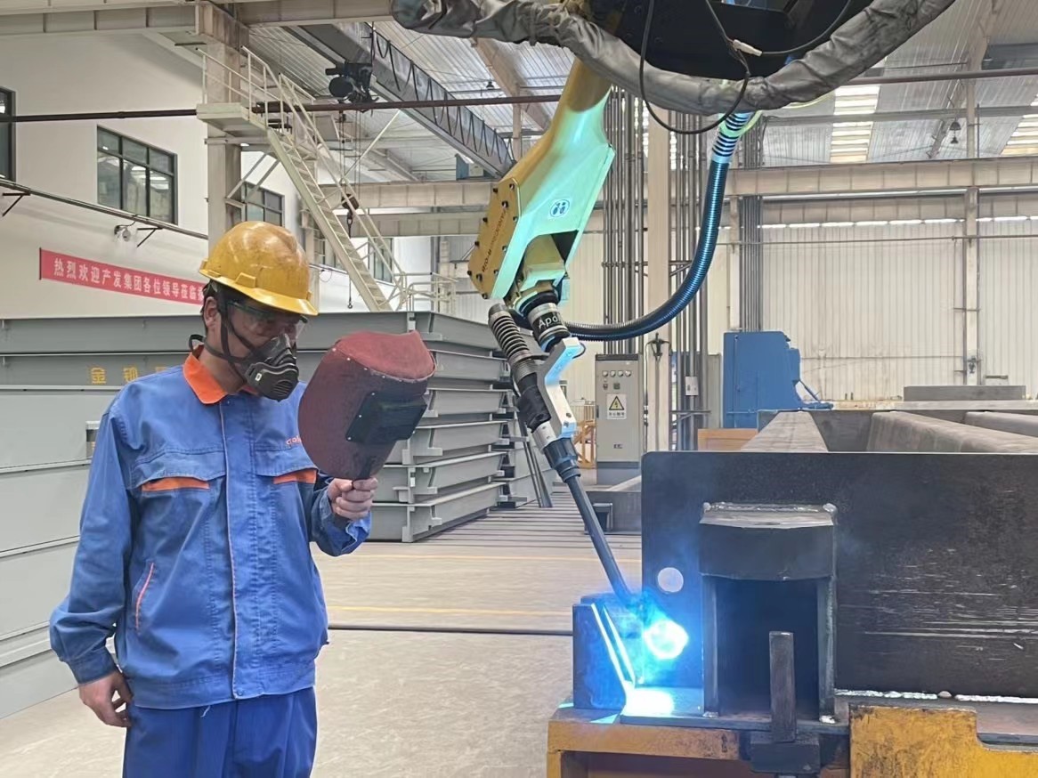 金鐘研發(fā)部門為提升汽車衡秤臺的承重強度,新設(shè)計了U型梁結(jié)構(gòu),經(jīng)過試制和不斷推廣,訂單逐步增加,汽車衡班的工作壓力也不斷加大,而汽車衡的稱臺焊接成為了制約工作效率的瓶頸。為了能夠按時保質(zhì)完成生產(chǎn)任務(wù),黨支部組織成立“黨員編程突擊隊”,由黨員張慶力任隊長,突擊隊成員發(fā)揮模范帶頭作用,發(fā)揚匠心精神,成功解決了“汽車衡自動化焊接編程”和自動焊機在平臺底部尋位不準難題,最大限度地提高焊接機器人的效率。